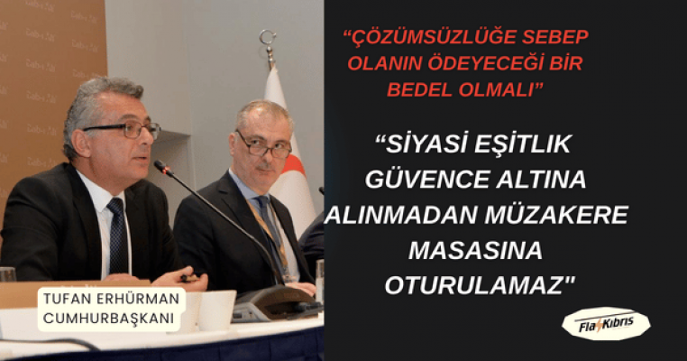 Kıbrıslı Türklerin azınlık olacağı bir antlaşmaya hiçbir Kıbrıslı Türkün imza atmayacağını anlatan Cumhurbaşkanı Erhürman, "Kıbrıslı Rumların da Kıbrıslı Türklerin de siyasi eşitliği güvence altına alınmaksızın müzakere başlayamaz. Bu müzakereden önceki aşamadır. Siyasi eşitlik güvence altına alınmadan müzakere masasına oturulamaz." ifadelerini kullandı.