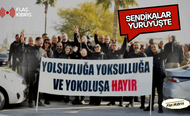 Gönyeli Çemberinde buluşan Kıbrıs Türk Amme Memurları Sendikası (KTAMS), Kıbrıs Türk Kamu Görevlileri Sendikası (KAMUSEN), Kamu İşçileri Sendikası (KAMU-İŞ), Kıbrıs Türk Öğretmenler Sendikası (KTÖS) ve Kıbrıs Türk Orta Eğitim Öğretmenler Sendikası (KTOEÖS) yetkilileri, Başbakanlık binası önüne yürüyüş başlattı.